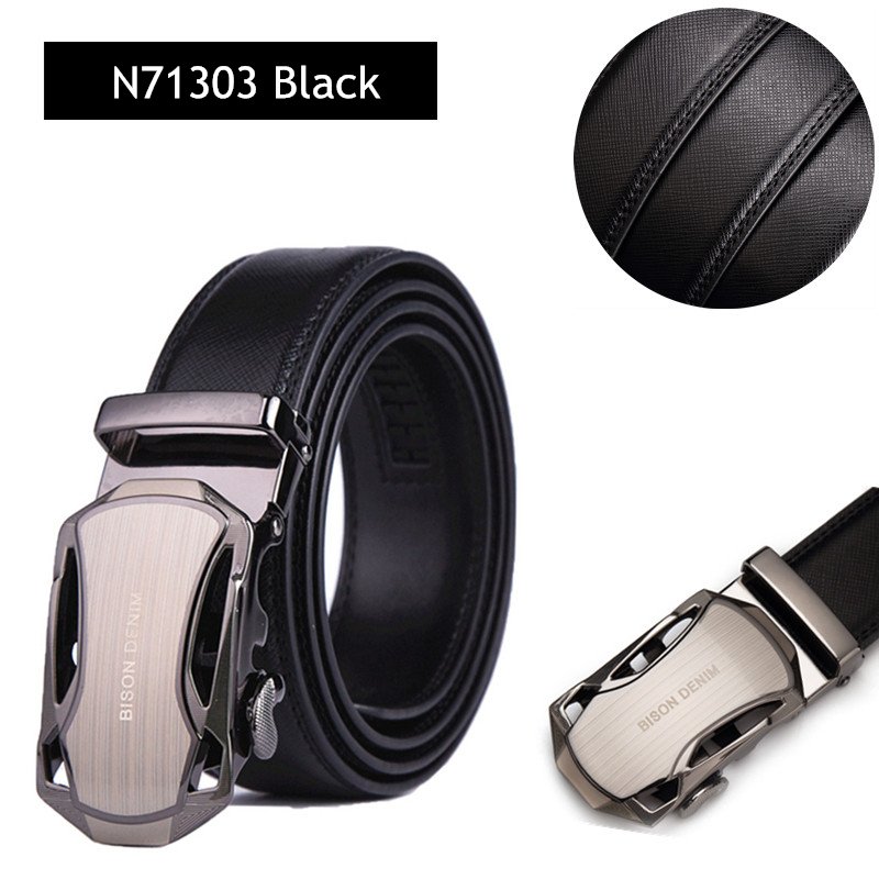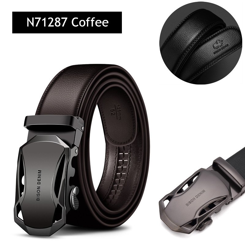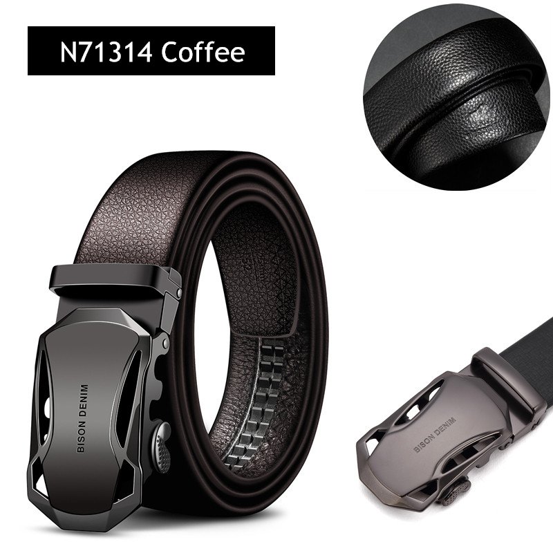 BISON DENIM Men’s Automatic Buckle Leather Belt